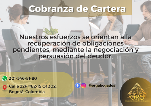 Se direcciona a la recuperación de valores en mora que presenten entidades públicas o privadas con nuestro cliente, buscando la normalización de cuentas y facturación que se encuentre pendiente de pago, desarrollamos estrategias comerciales, judiciales y conciliatorias que nos permita la recuperación de dichas acreencias.